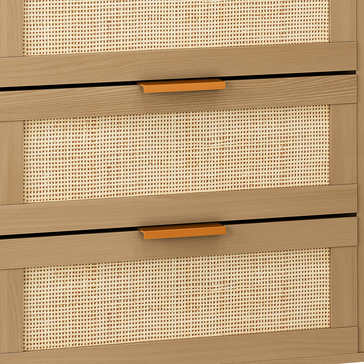 Modern natural rattan:The rattan dresser adopts simple wood color and natural rattan drawer design, providing you with a simple and spacious sorting and storage solution.