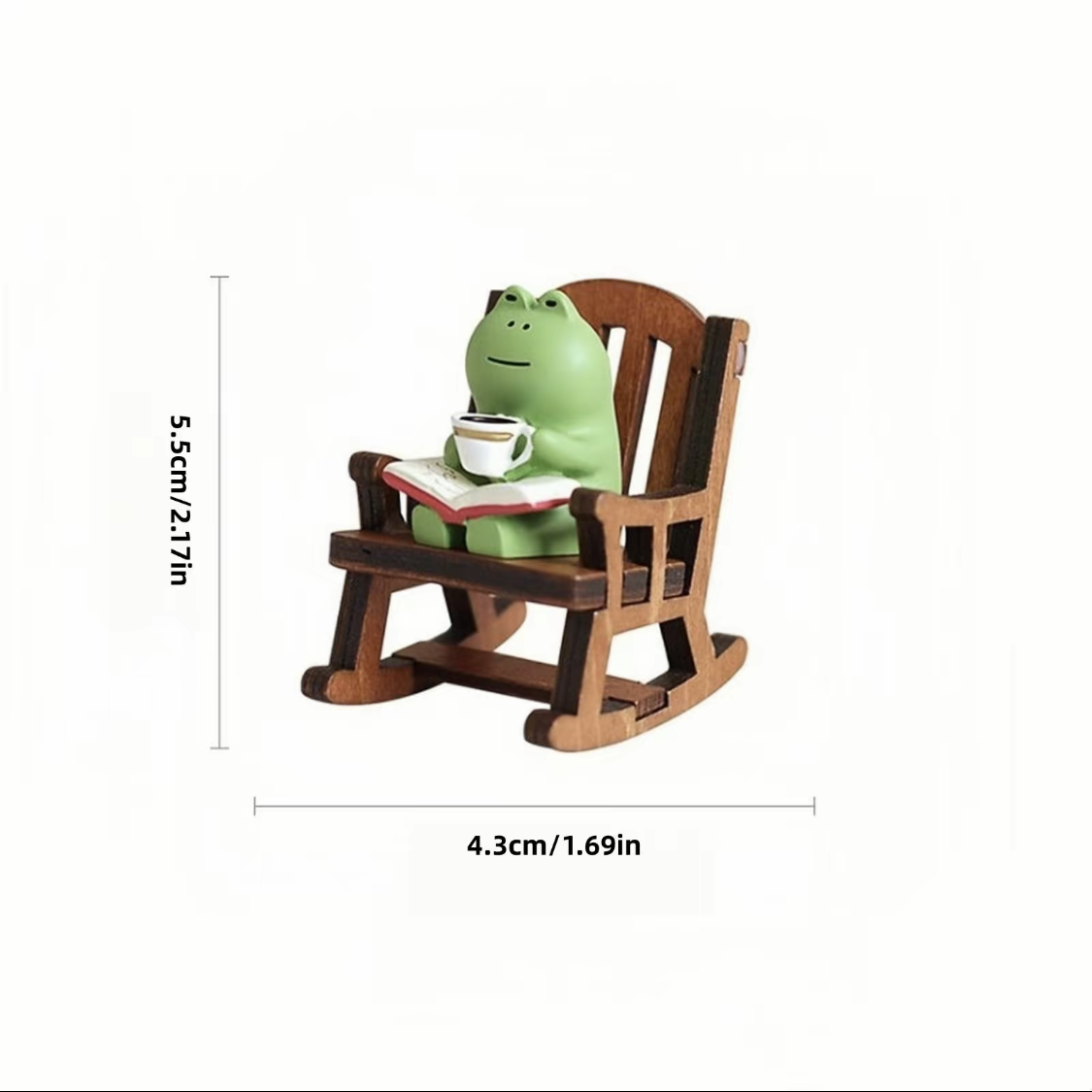 Mini Frog & Chair Design Resin Ornament, Cute Mini Frog Figurine With Small Sofa Resin Figure, Frog With Rocking Chair Resin Decor, 1 Set Creative Car