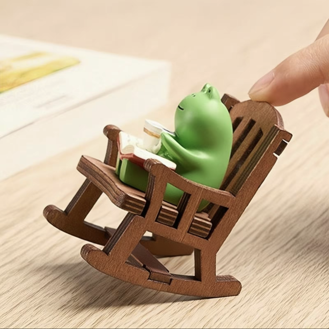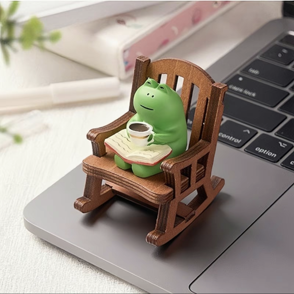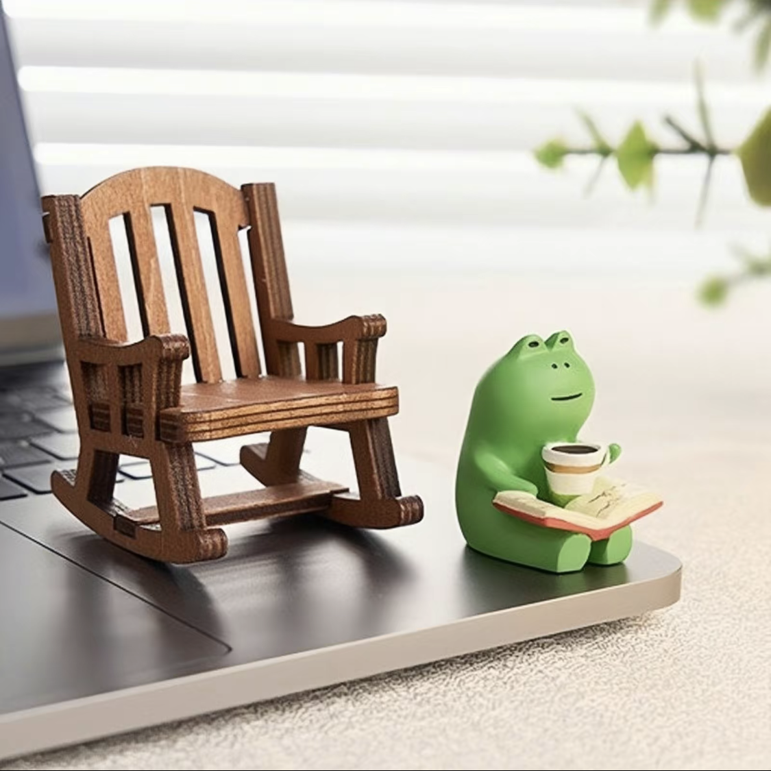 Home > Mini Frog & Chair Design Resin Ornament, Cute Mini Frog Figurine With Small Sofa Resin Figure, Frog With Rocking Chair Resin Decor, 1 Set Creative Car