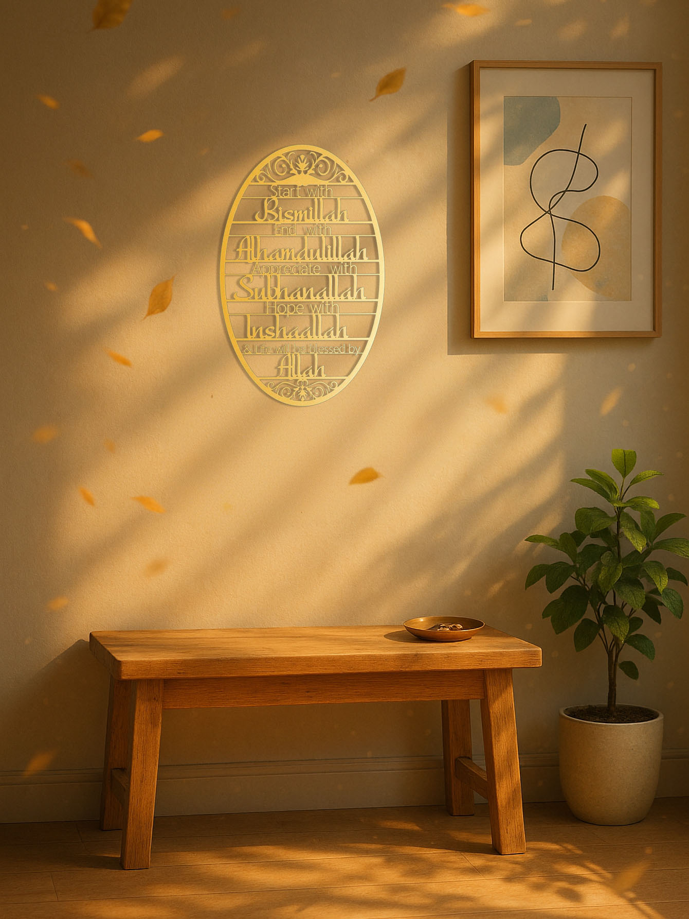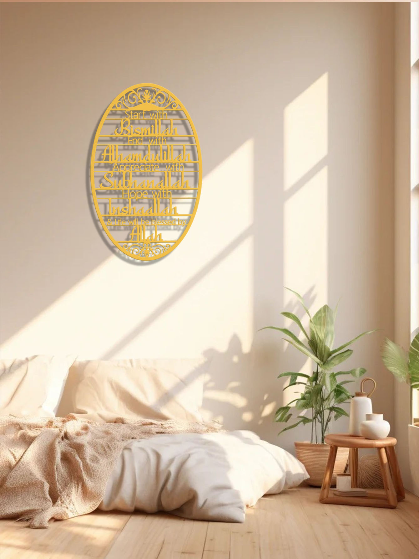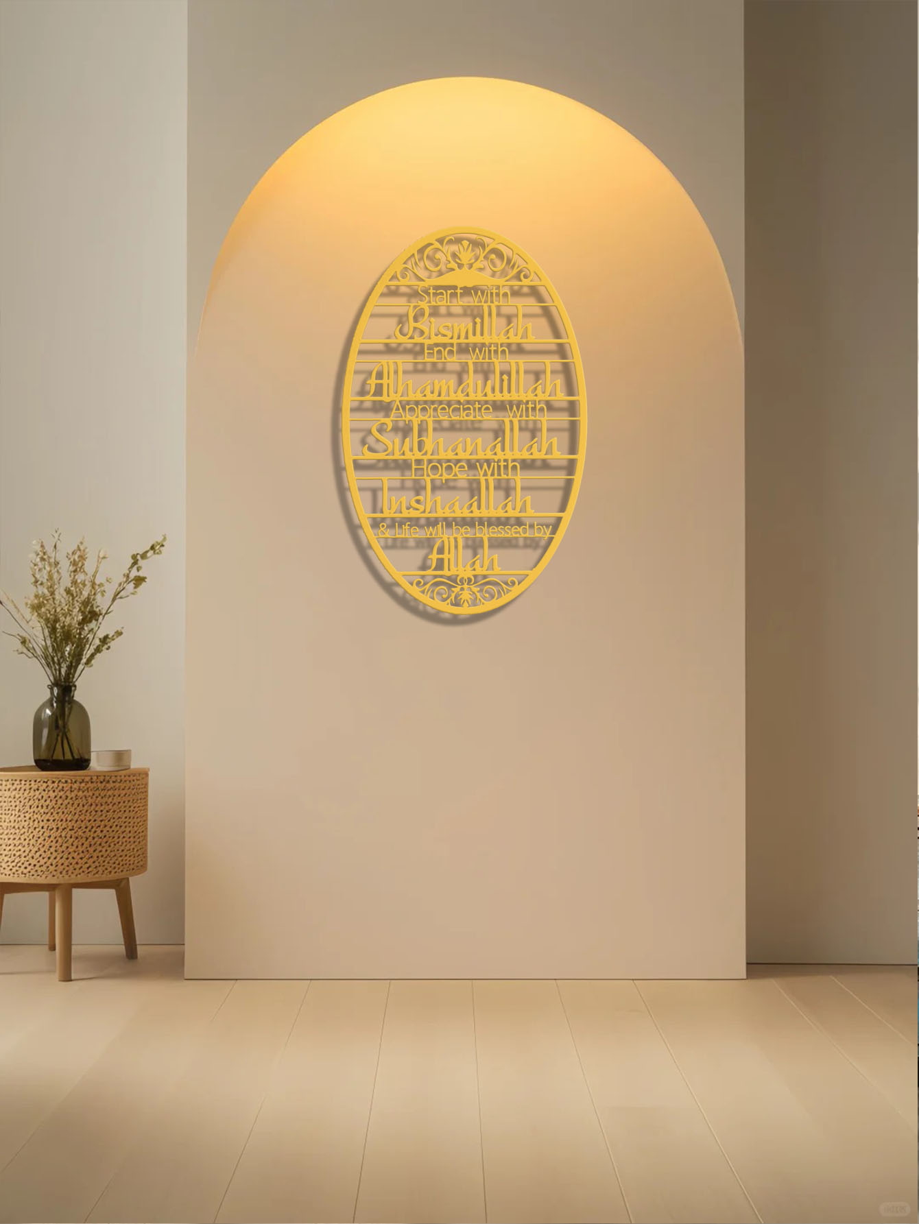 Beautiful 'Begin With Bismillah' Metal Wall Art - Elegant Home Decor for Study Room, Bedroom & More - Perfect Housewarming Gift & Islamic Decor (1 PC), Room Decor, Halloween Decor, Home Decor, Bathroom Decor, Bedroom Decor.Wall Sculptures