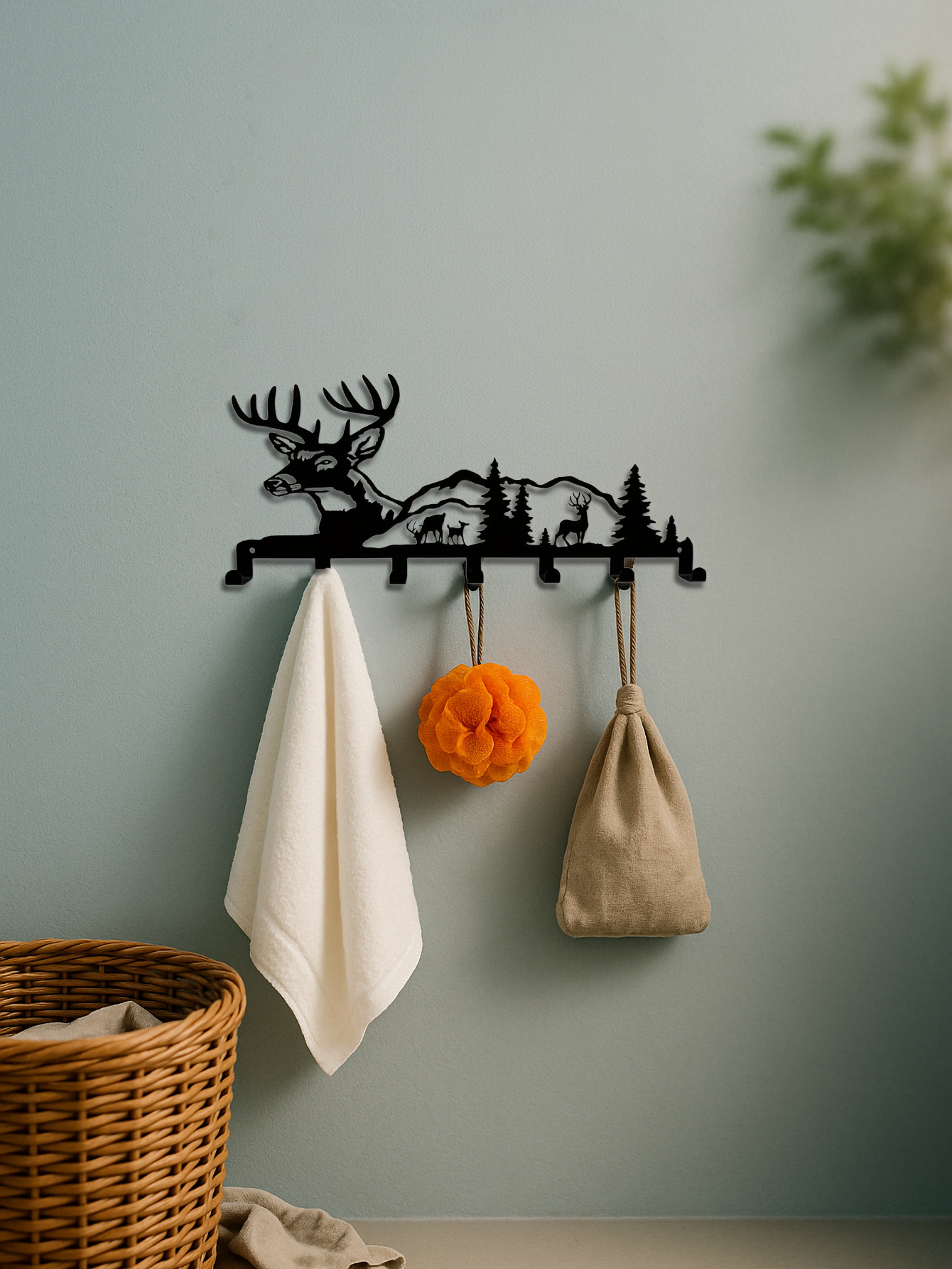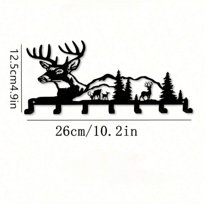 Deer And Forest Metal Key Hook - Single-piece Stylish Wall-mounted Organizer, Effortlessly Installable for Entryway, Ideal Nature-themed Gift for Enthusiasts, Utility Hooks for Keys Accessories Wall Sculptures