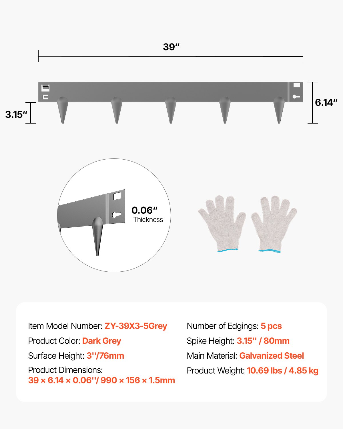 Home > Steel Landscape Edging 5 Packs 39 X 3in Rust-Resistant Edging Border Dark Gray