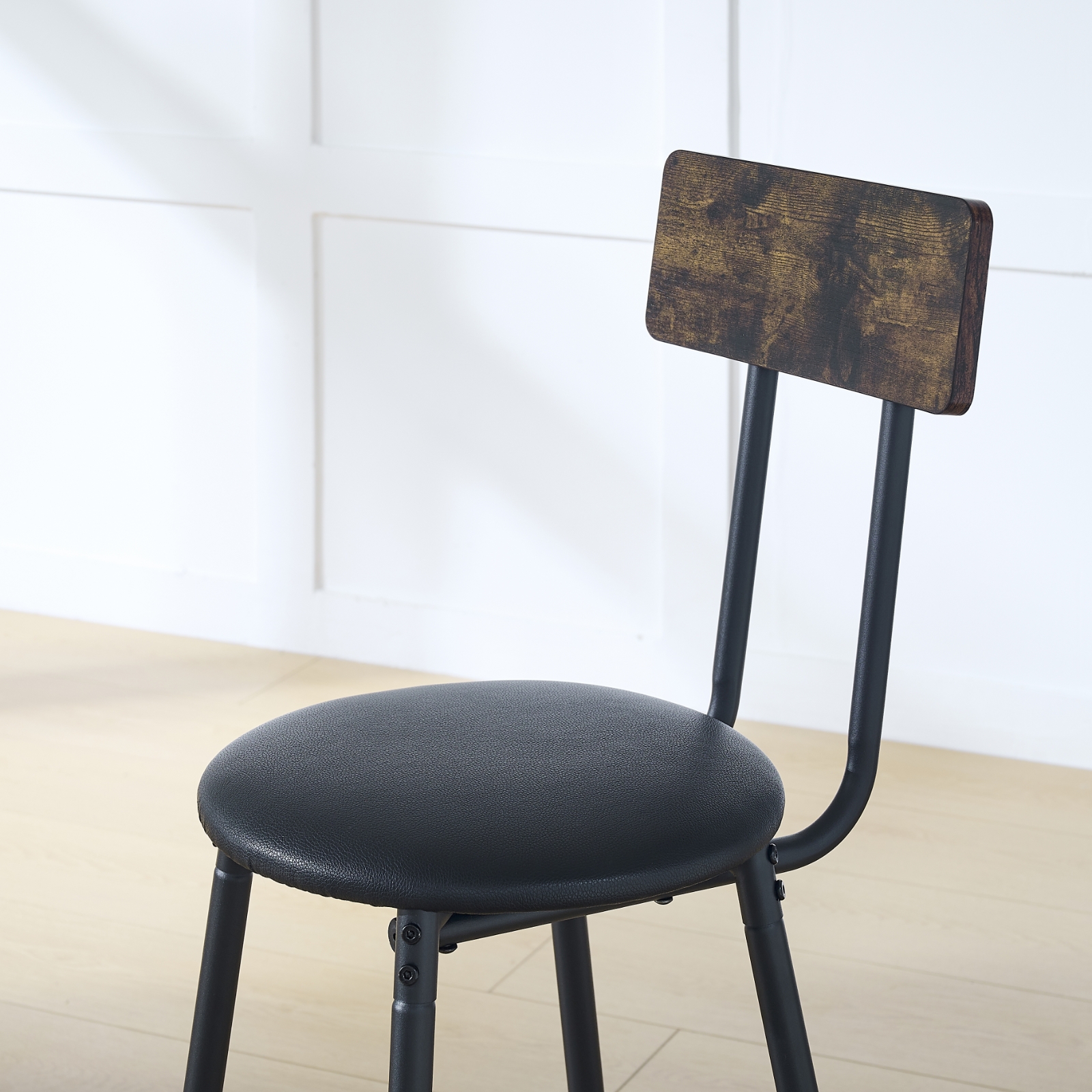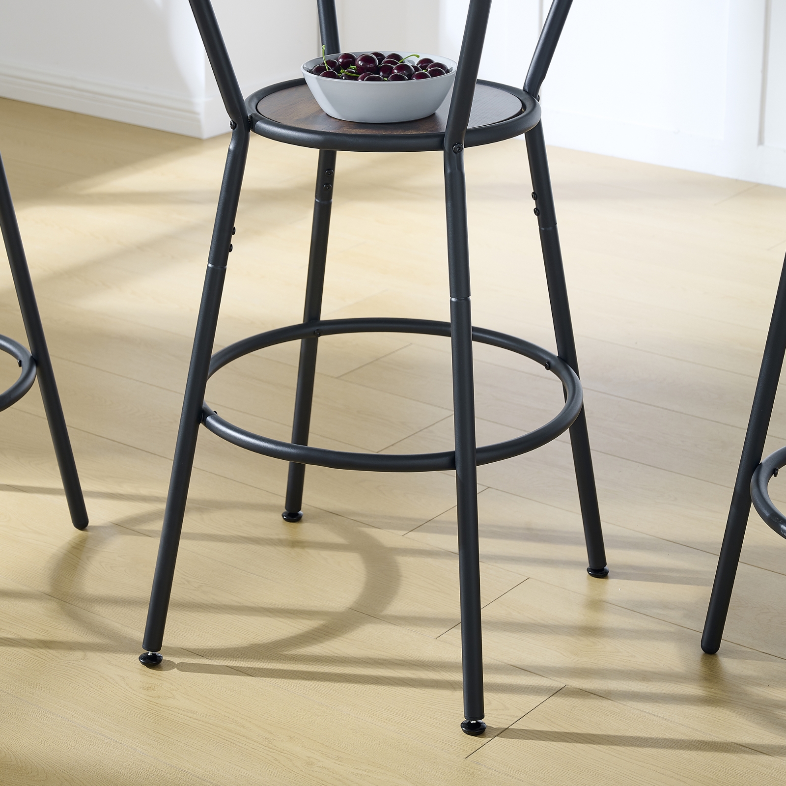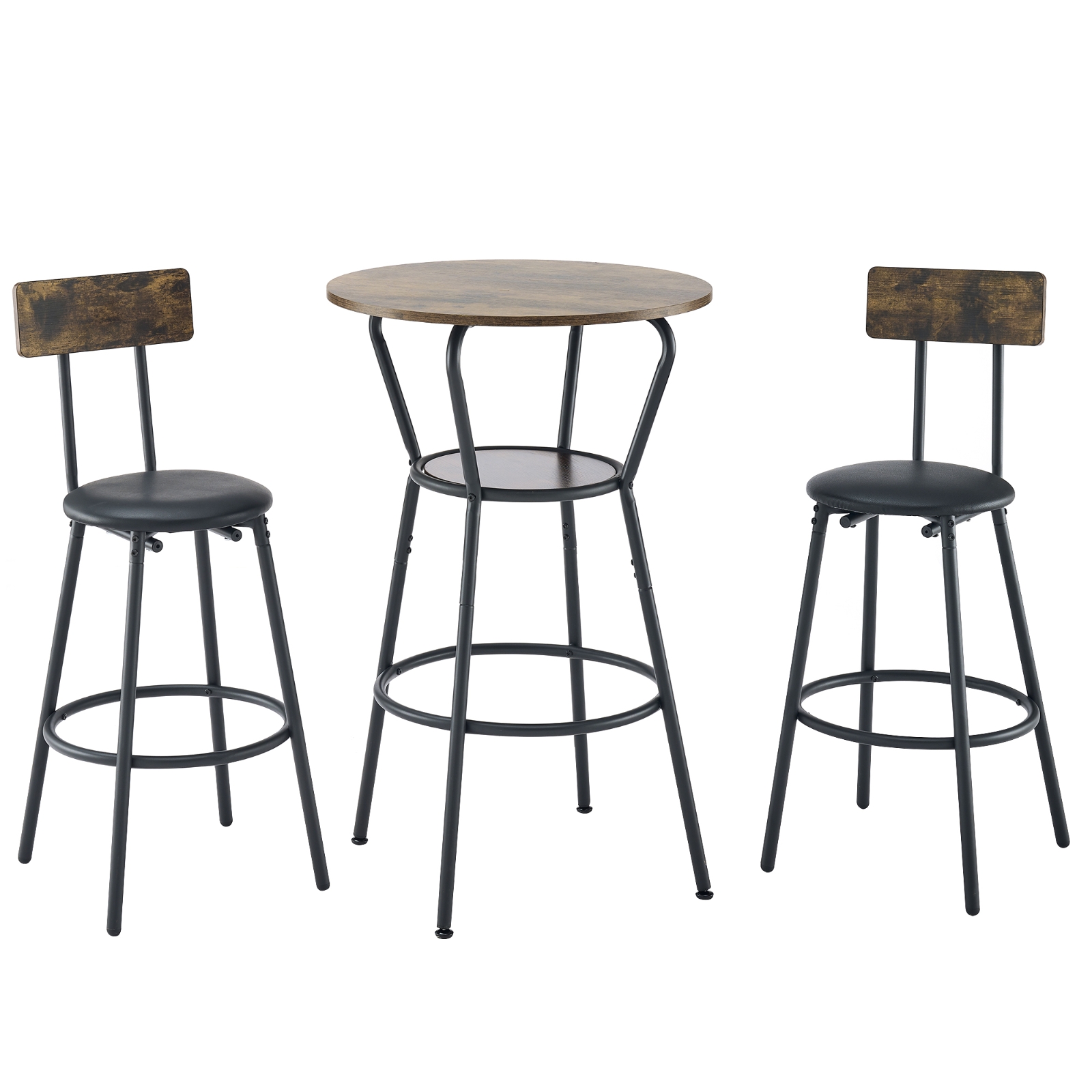Home > Round Bar Table And Stool Set With Shelf, Upholstered Stool With Backrest, Rustic Brown, 24.17 W X 2